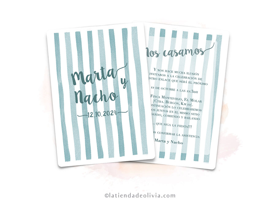 Las invitaciones de boda modelo Rayas son para novios que quieren una boda con un toque veraniego.